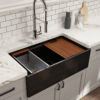 A deep basin kitchen sink designed for washing cookware and dishes.