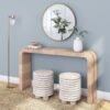This minimal entryway console table is designed for residential entryways where simple furniture placement is preferred. The table provides a stable surface for small household items such as keys or mail while maintaining a clean and unobtrusive appearance. The structure supports everyday indoor residential use and integrates easily with modern or minimal interior furniture layouts.